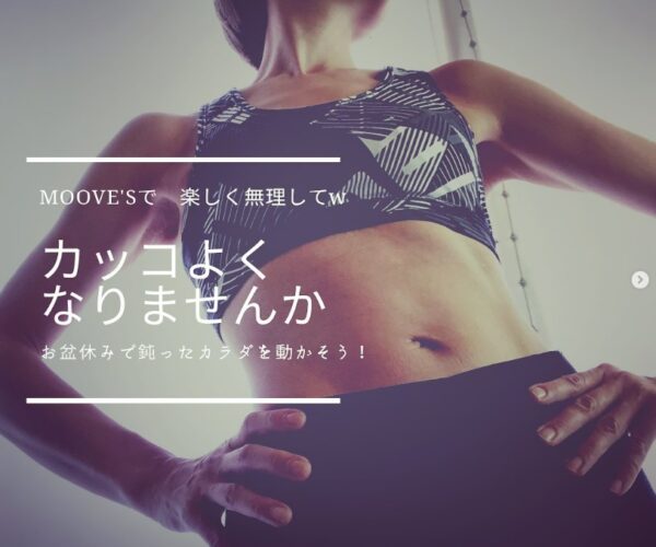 毎日暑い日が続いておりますが皆さまお変わりありませんか? 先日、ふと目にした記事に 「運動は前向きな発想を生み、運を引き寄せる!」 コシノジュンコさんの言葉です 「運動」とは「運」が「動く」と書く 動くとは進むこと運動して体を動かすと、行動が気持ちに作用して、すべて前向きな発想になる 止まらずに前進すれば、何かが変わるだから、「運」が「動」く ……!! 本当にその通りだ! 暑さでボーっとしてると身体も心固まってしまう😓 MOOVE’Sは先週土曜日から丸一週間のお盆休みをいただいております…そろそろ身体がウズウズしてませんか? お待たせしました!今週土曜日からMOOVE’S解禁です❣️ 普段運動している人もしていない人も あと「+1」生活の中に運動を取り入れてみませんか? 週1回→2回に増やすと グッとカラダが変わります✨ お友達同士、仲間同士、年齢性別問いません! 皆さまのご参加をお待ちしております♡ MOOVE’Sでは2回無料体験出来ます☆ ご予約&お問合せ050-3204-3002