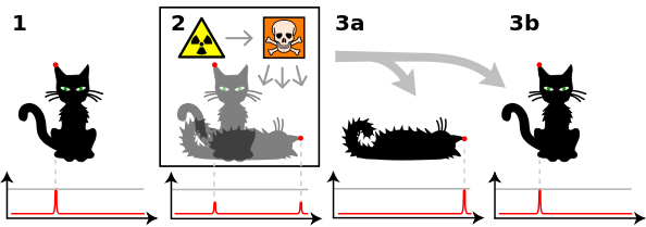 物理学と哲学を橋渡しするようなこのシュレディンガーの思考実験は実に隙が無く、量子力学が引き起こす奇妙な現象を明確に表しているので大好き。