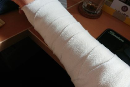 右手が使えないので傘を左手で持つともう何も持てない・・・