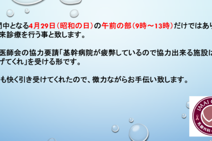 医師会の協力要請に応える事にしました。